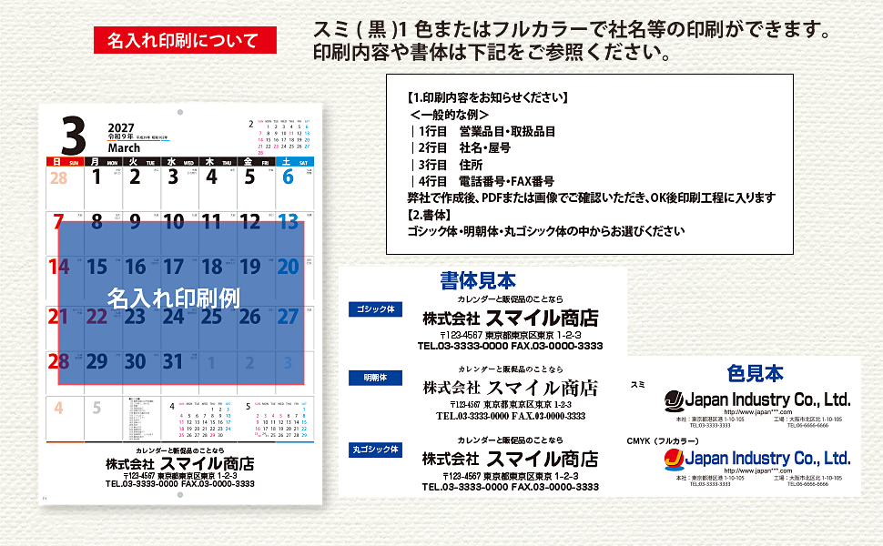 2027年版名入れカレンダーの受注を開始しました