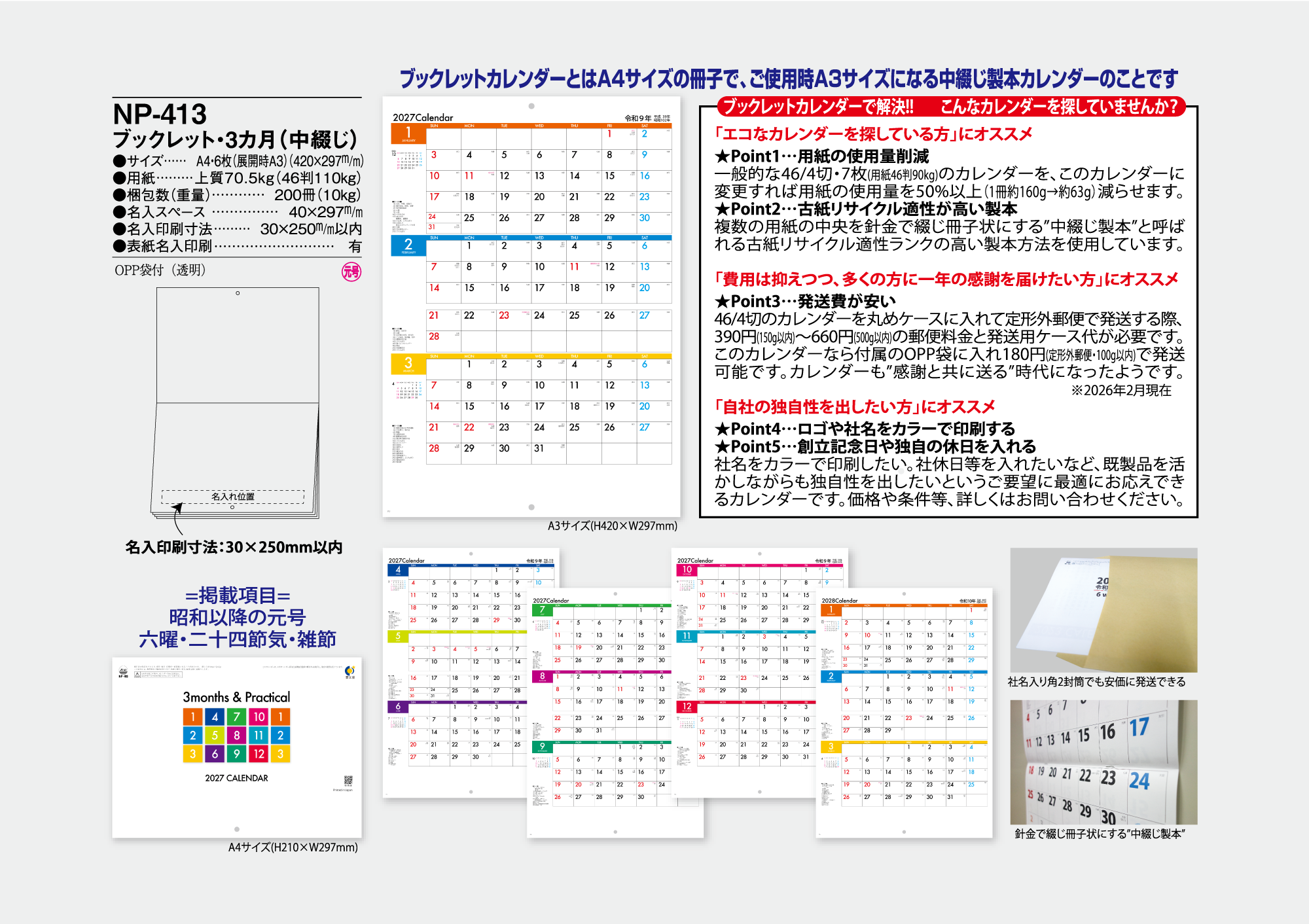 2027年|NP413年ブックレット・3カ月カレンダー<中綴じ>