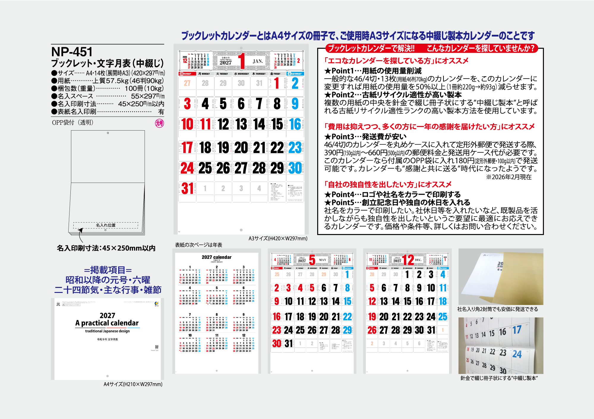2027年|NP451ブックレット・文字月表<中綴じ>