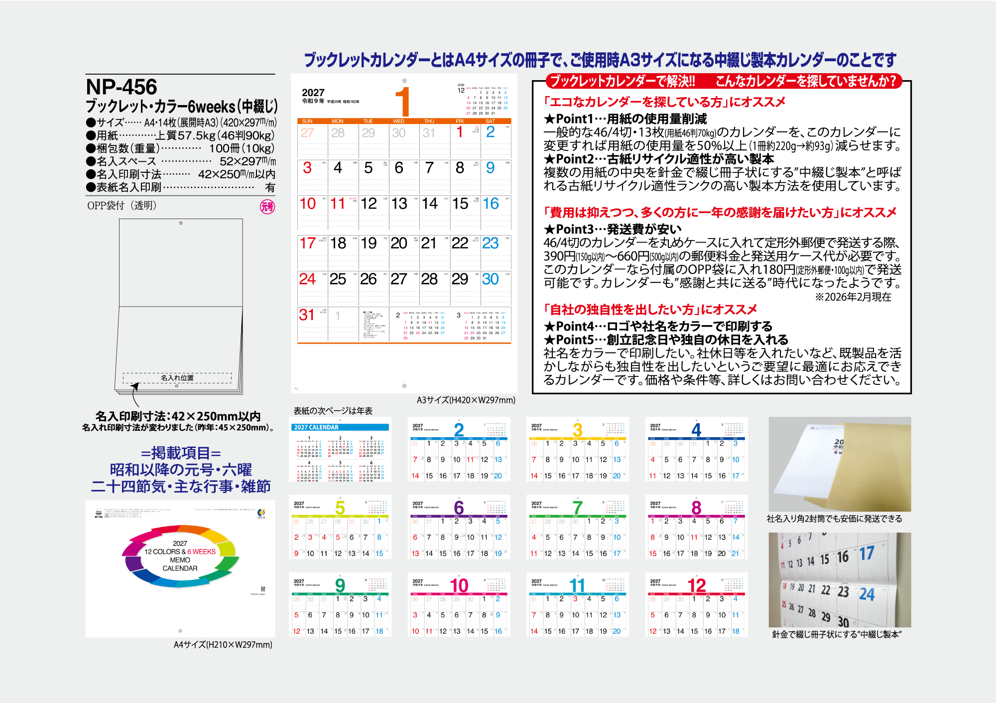 2027年|NP456ブックレット・カラー6weeks<中綴じ>